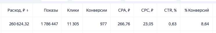 Все это я вшил в оффер на лендинге и это дало нам в итоге 557 заявок по 800 рублей!